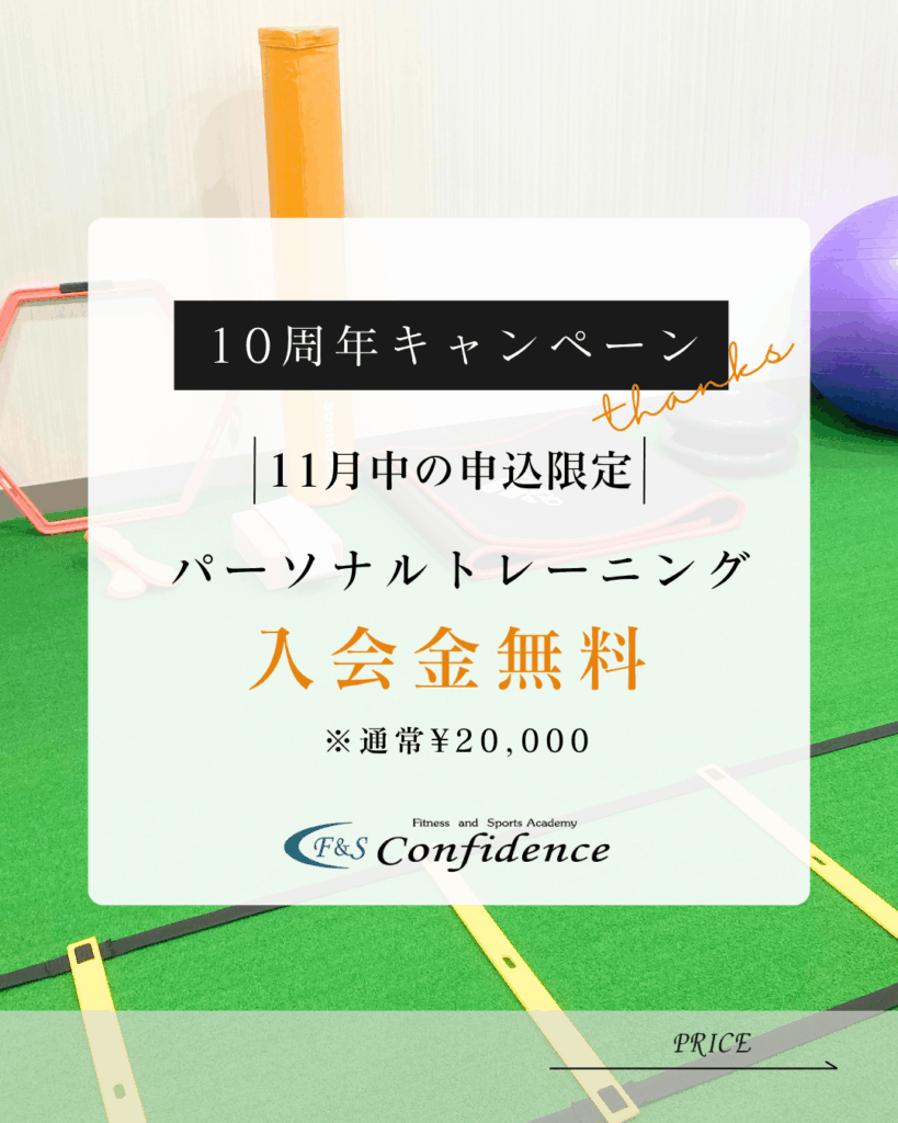 名鉄岐阜駅すぐ、健康と美容に強いパーソナルトレーニングジム「コンフィデンス」からの、10周年キャンペーンのご案内です✨